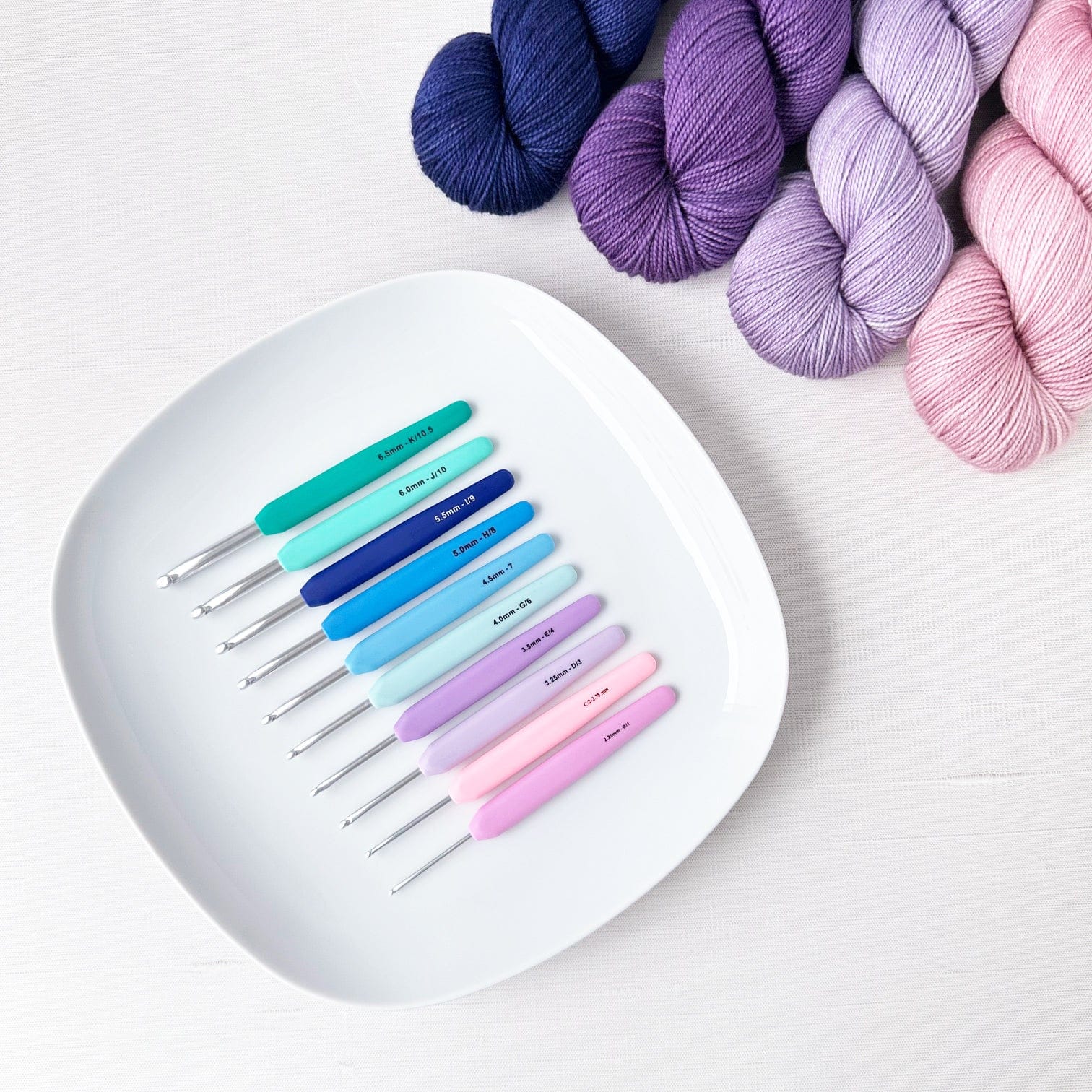 Each size is color-coded for quick, at-a-glance organization, so it’s simple to grab exactly the hook you need. Practical, cheerful, and dependable — they’re a great everyday choice for beginners and experienced crocheters alike.